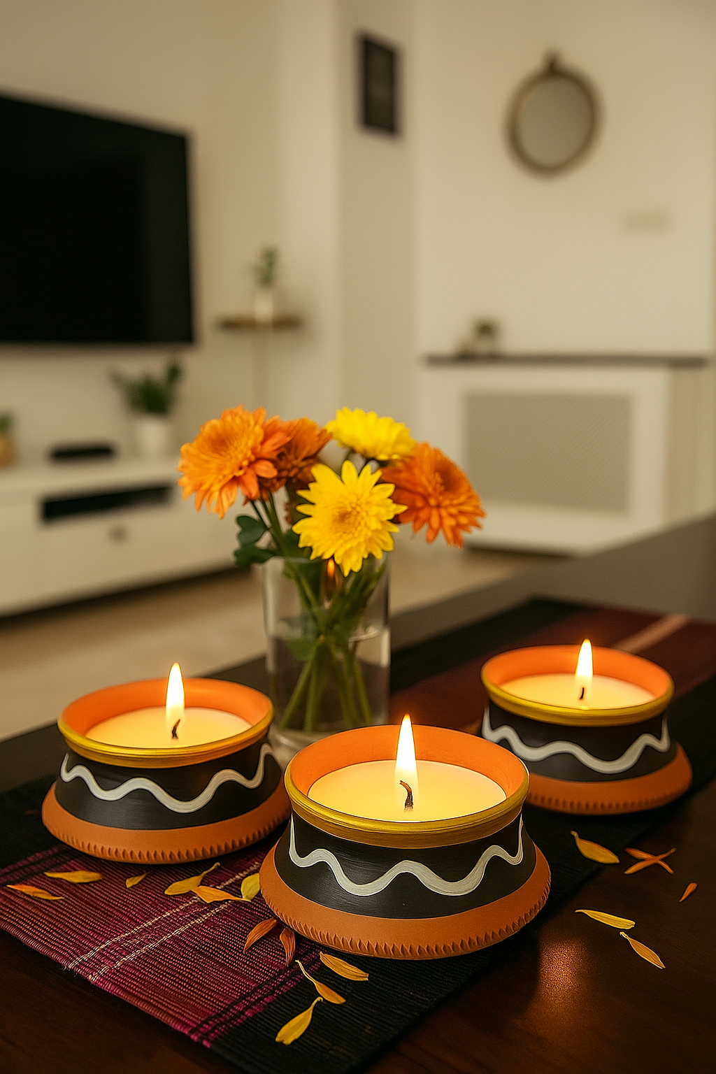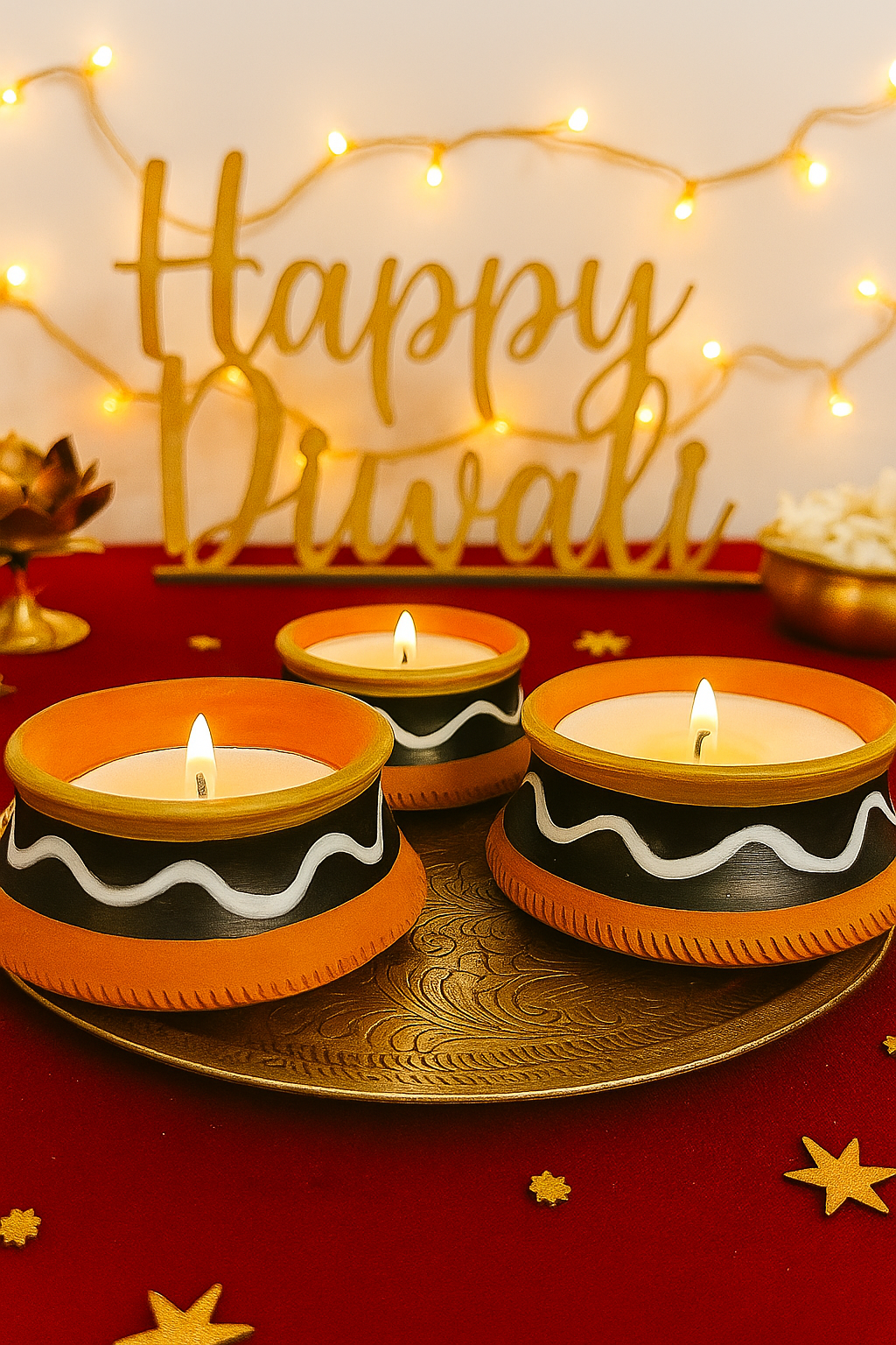 lluminate your spaces with the rustic charm of KallaDeep – Handmade Terracotta Candle. Crafted by skilled potters, this eco-friendly clay candle features traditional black band artistry with golden highlights, symbolizing strength, elegance, and purity. Perfect for festivals, meditation, home décor, or gifting, KallaDeep diya combines earthy warmth with timeless Rajasthani craft. Made with natural terracotta and wax, it burns cleanly while adding a soulful glow to your home. Unlike mass-produced candles, KallaDeep celebrates sustainability and heritage. Bring home this handmade terracotta diya candle and experience a blend of culture, light, and eco-conscious living in every flicker.