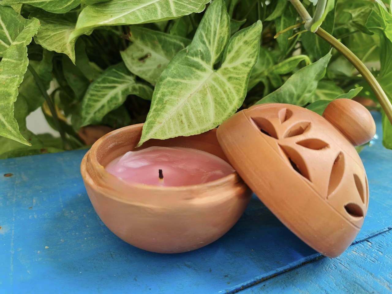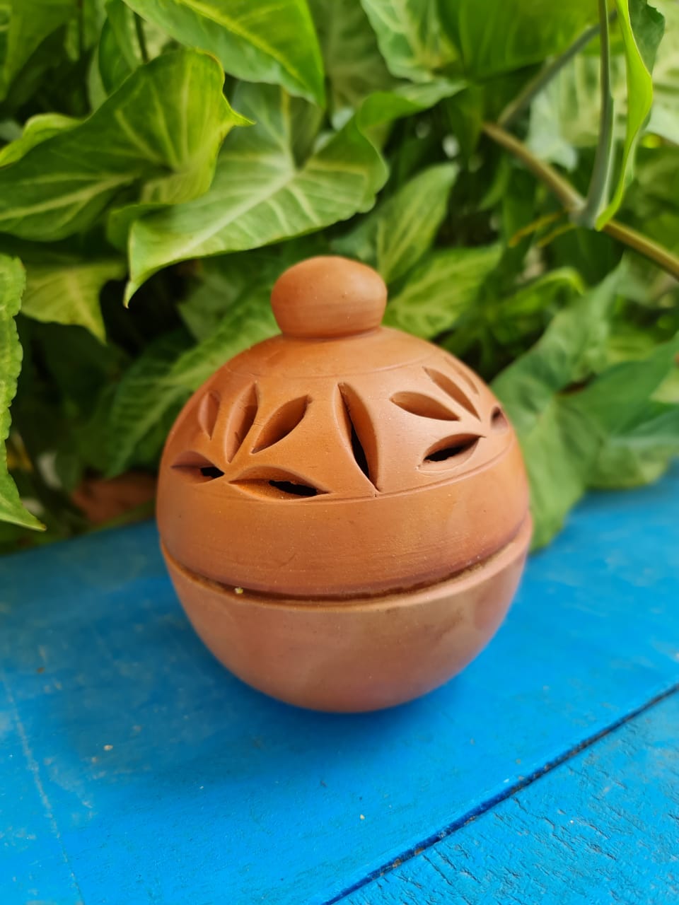 Handcrafted by skilled artisans, this matka-shaped diya holder features intricate leaf-shaped cutouts that create enchanting patterns of light when lit. Its timeless terracotta design offers an earthy charm, while the option to paint it in colors of your choice allows for personalization to suit your space or occasion.